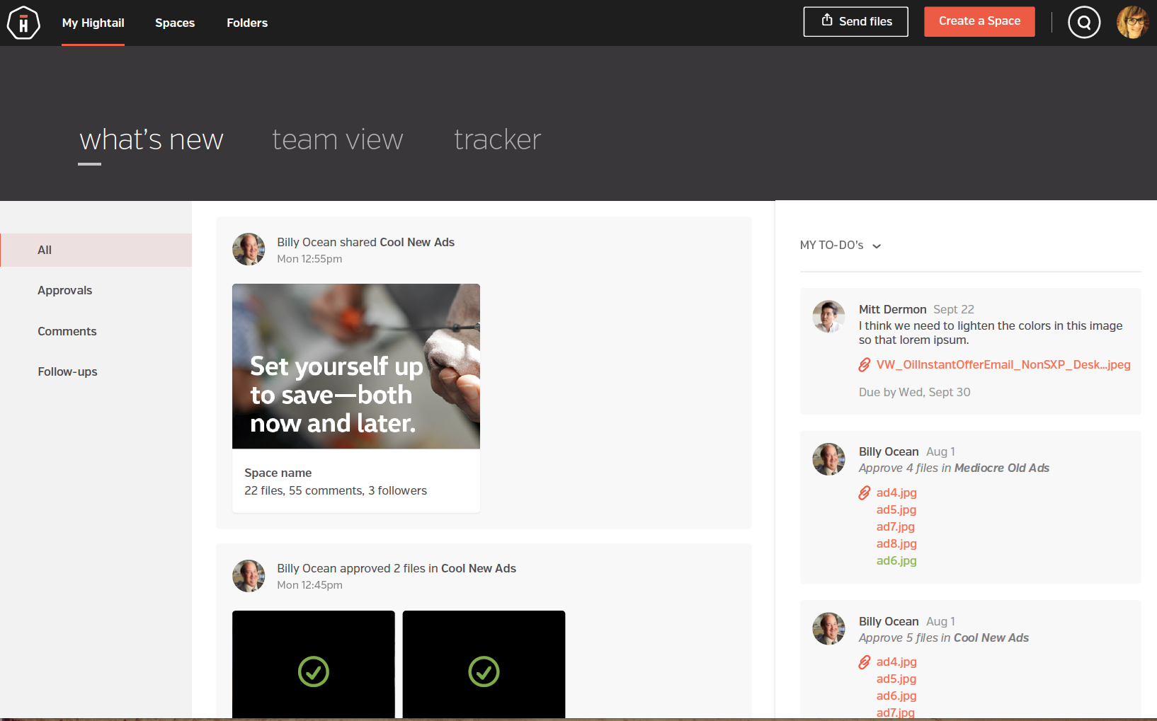 Hightail focuses on creative collaboration, particularly for sharing and reviewing large multimedia files.