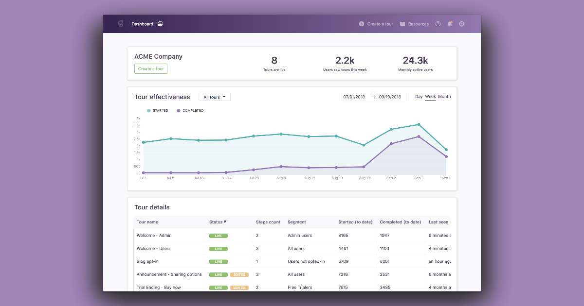 The platform includes basic analytics to measure engagement with guidance elements. These insights help teams refine messaging and timing.