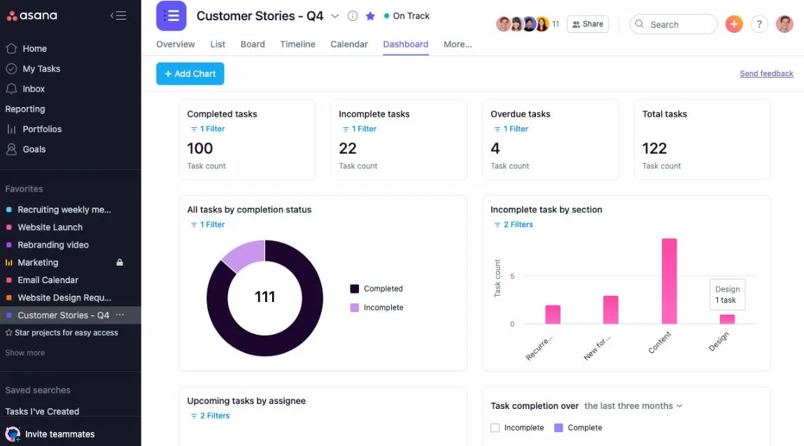 - Custom dashboards: Track projects, goals, and workloads visually.