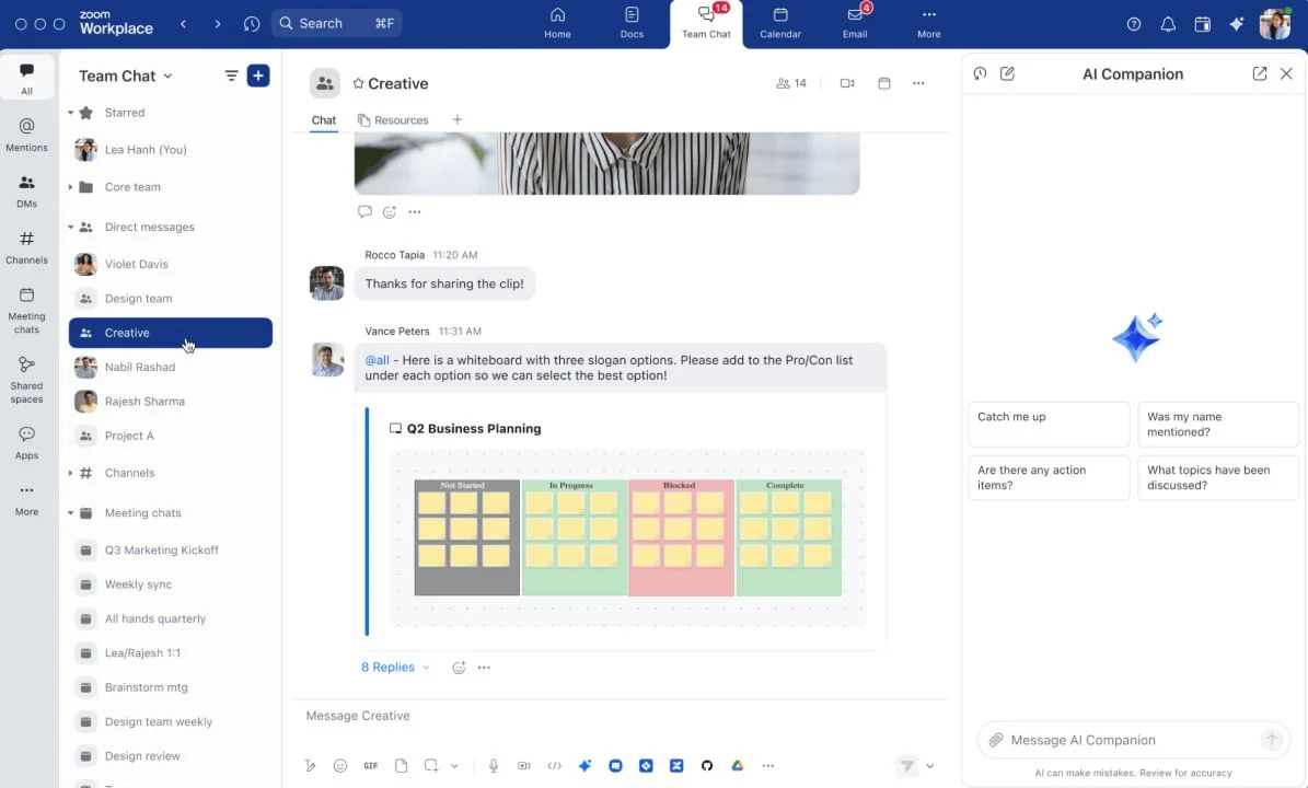 - Breakout rooms: Facilitate focused team discussions.